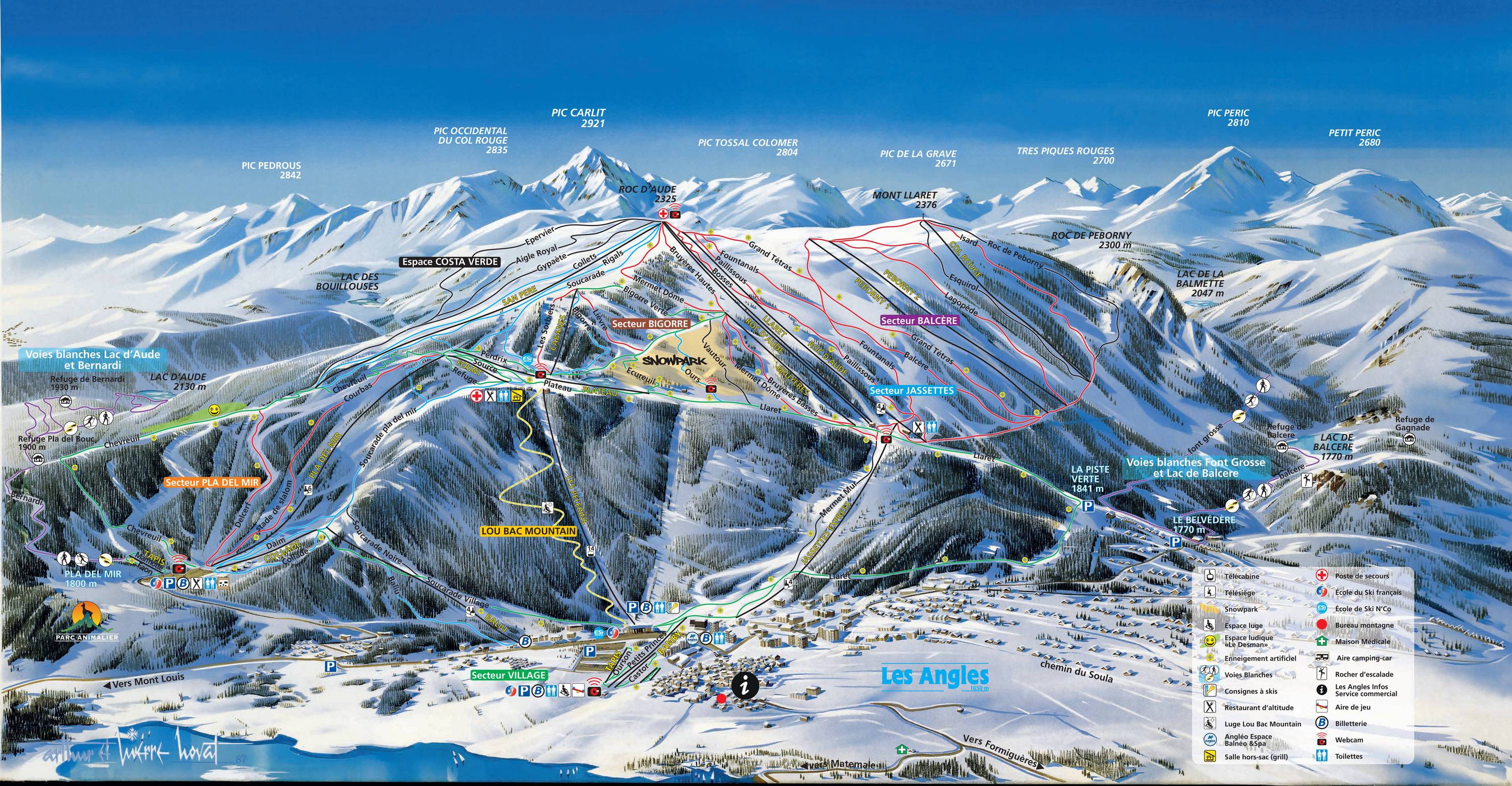 Orientierung (Pistenplan, Informationstafeln, Ausschilderung) und Sicherheit im Skigebiet Les Angles