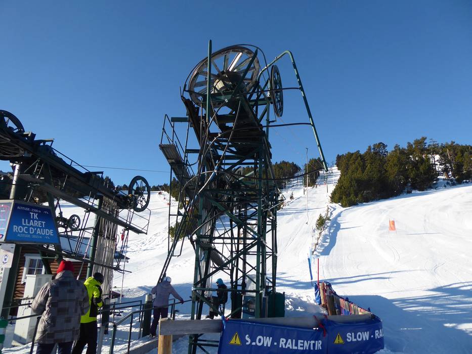 Von den Talstationen gelangt man mit einer Gondelbahn und Sesselbahnen hinauf in das Skigebiet Les Angles. Oben im Skigebiet führt eine Sesselbahn hinauf zum Roc d'Aude. Die weiteren Pisten werden von Tellerliften erschlossen. Für Anfänger stehen Übungslifte und Förderbänder bereit.