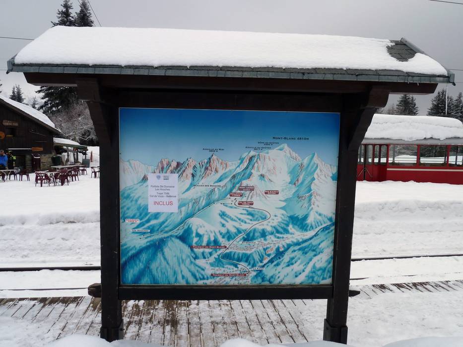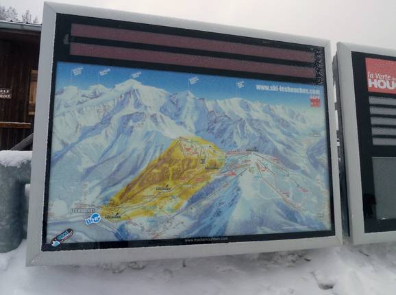 Das Skigebiet von Les Houches ist im Gesamtplan von Chamonix-Mont-Blanc mit dargestellt. Es gibt auch einen eigenen Pistenplan vom Skigebiet. Alle Skilifte und Pisten sind dort mit eingezeichnet. Auf der Rückseite findet man Informationen zu den Einkehrmöglichkeiten, den Parkplätzen und zu den Aktivitäten im Skigebiet. Leider gibt es kaum Informationen zum Tramway du Mont Blanc.
