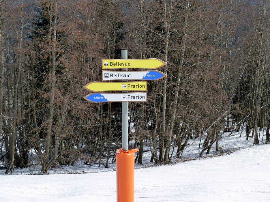Orientierung (Pistenplan, Informationstafeln, Ausschilderung) und Sicherheit im Skigebiet Les Houches/Saint-Gervais – Prarion/Bellevue (Chamonix)