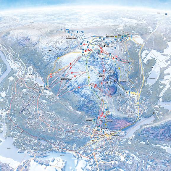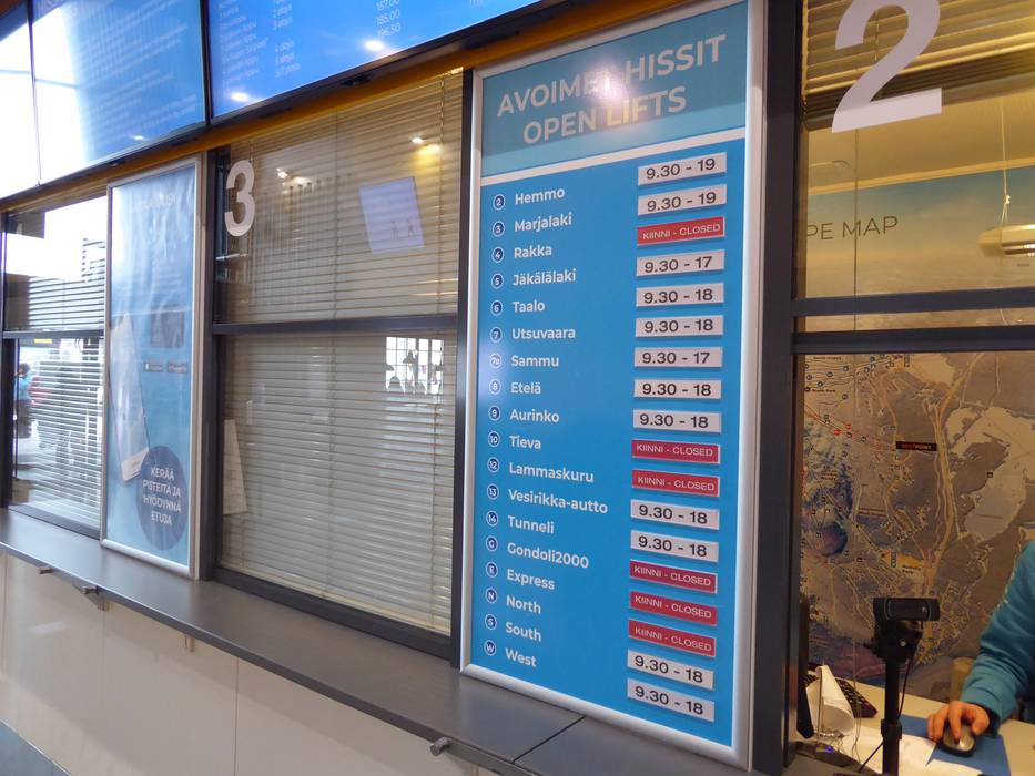 Orientierung (Pistenplan, Informationstafeln, Ausschilderung) und Sicherheit im Skigebiet Levi