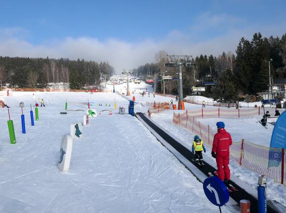 Das Skigebiet Lipno ist perfekt für Familien und Kinder geeignet. Es bietet ein weitläufiges Übungsgelände, zahlreiche Skikurse der örtlichen Skischule, viele leichte Pisten sowie spannende Skicross-Strecken und Wellenbahnen. Abwechslung verspricht zudem der Baumkronenpfad, der kleine und große Gäste gleichermaßen begeistert.