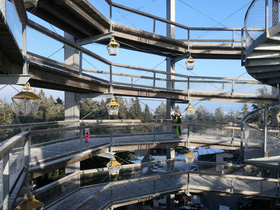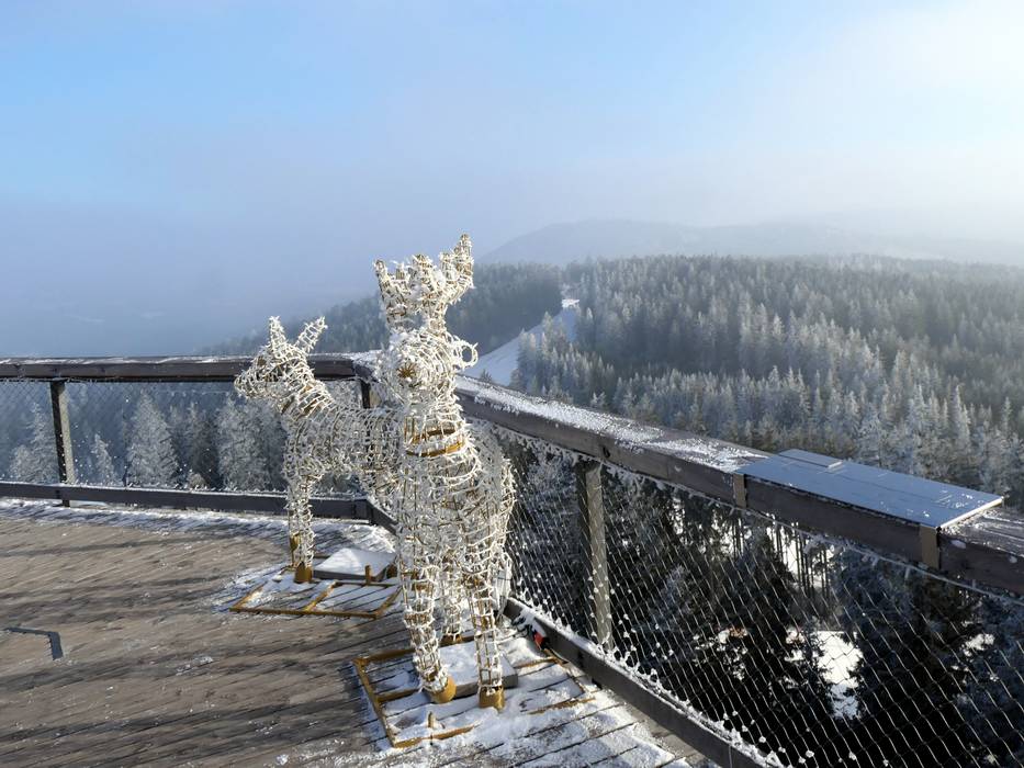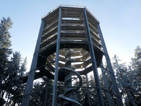 Der 675 m lange Baumkronenpfad Lipno bietet vom 40 m hohen Turm einen herrlichen Blick auf Stausee und Böhmerwald. Er ist zu Fuß, per Sessellift oder Shuttlebus erreichbar und am Abend beleuchtet. Während des Skifahrens oder zum Nachtski ein Highlight!