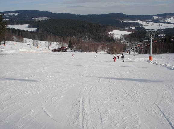 Das Skigebiet Lipno bietet zumeist leichte Abfahrten und einige mittelschwere Pisten über Almwiesen und durch Waldschneisen.