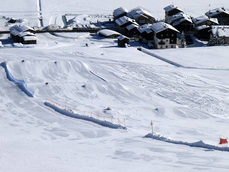 Livigno bietet erstklassige Snowparks am Mottolino und am Carosello 3000. Die Snowparks sind in der Szene auch aufgrund der Schneesicherheit sehr beliebt. Im Skigebiet sind weitere kleinere Snowparks verteilt. Vom Anfänger bis zum Profi wird hier alles abgedeckt. Zudem gibt es zahlreiche Hindernis-Parcours, Spaßpisten und eine natürliche Halfpipe (Naturbecken).