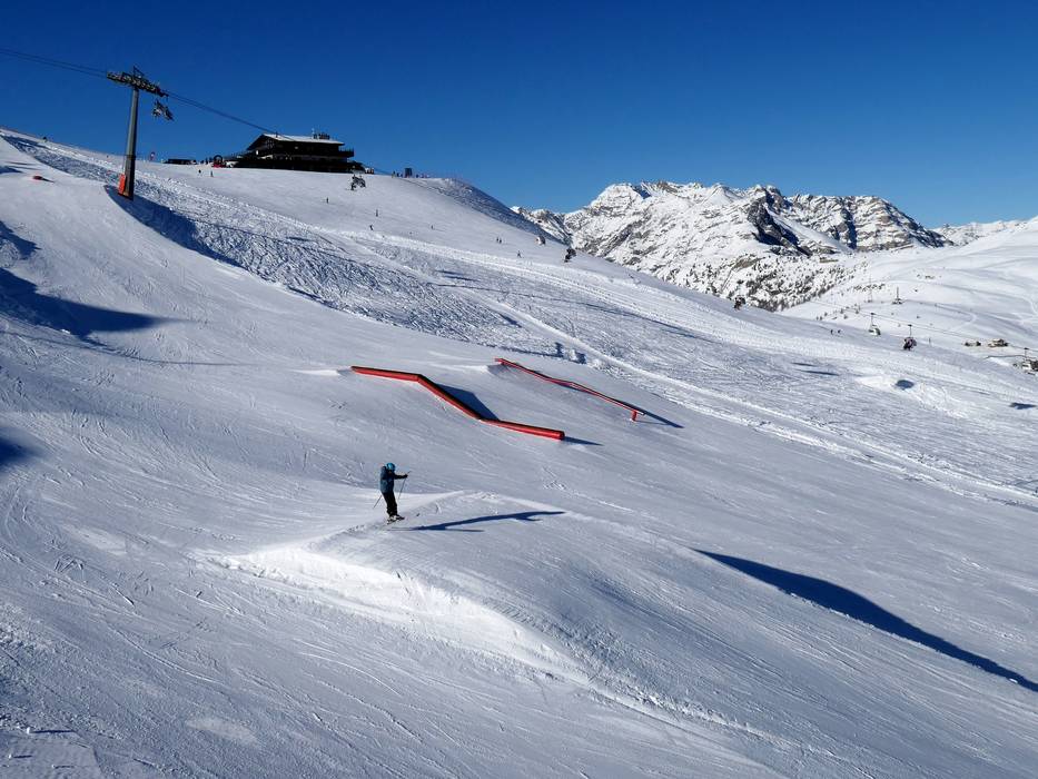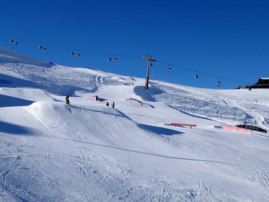 Der Snowpark befindet sich am Carosello 3000 und ist Dank der Schneesicherheit sehr lange geöffnet. Der Snowpark ist groß und bietet Easy und Medium Lines.
