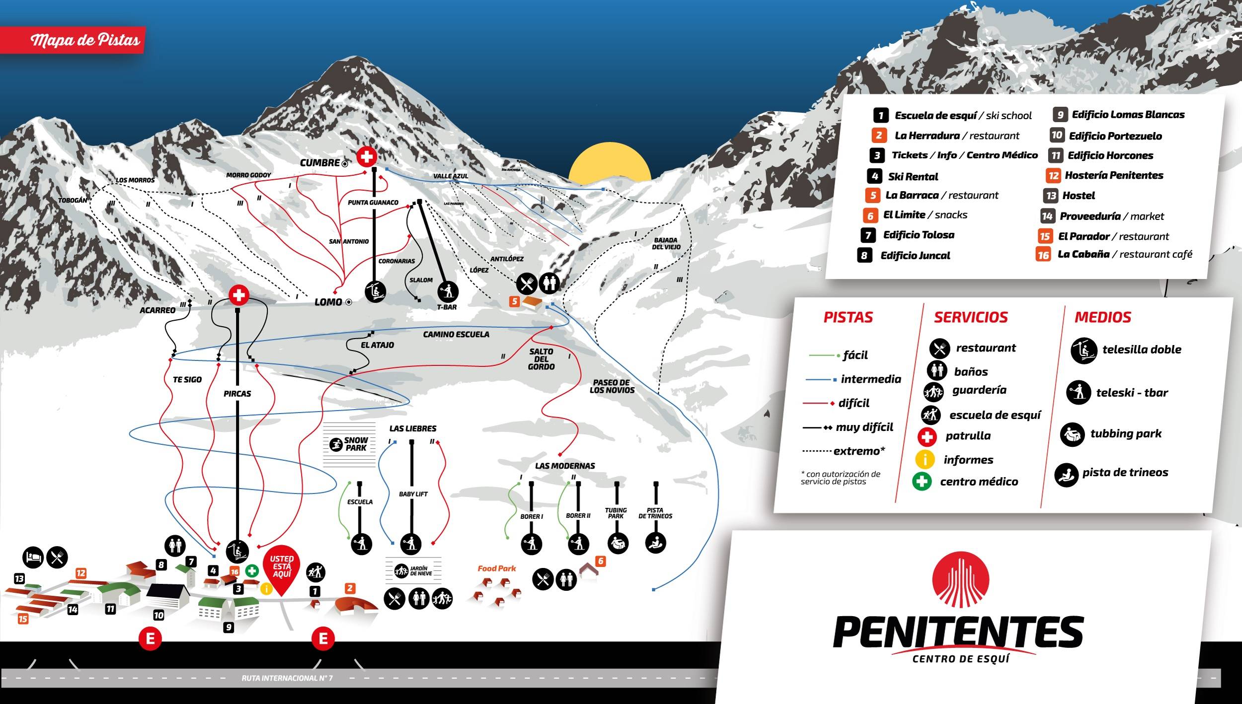 Pistenplan Los Penitentes Saison ---- !!! closed temporarily/vorübergehend außer Betrieb