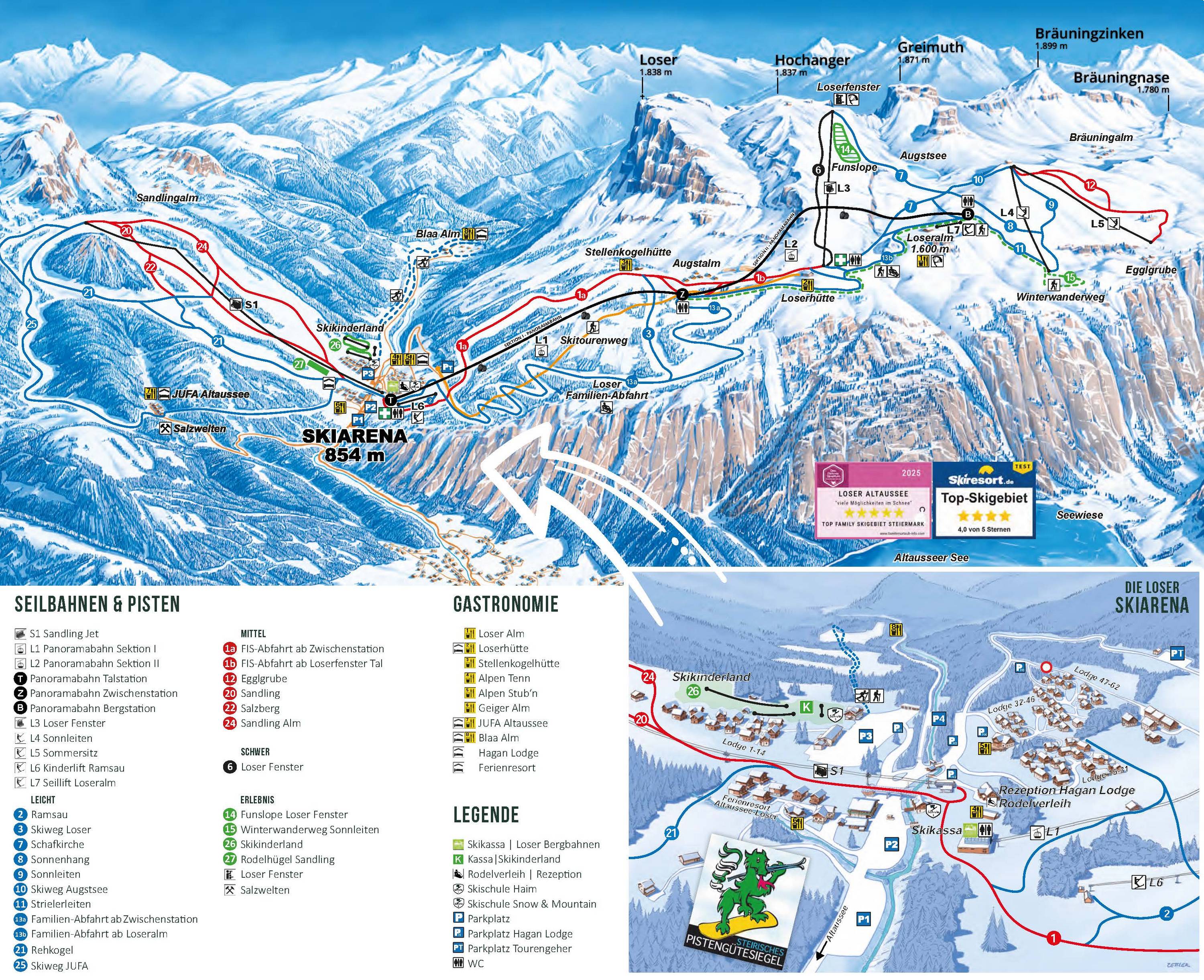 Orientierung (Pistenplan, Informationstafeln, Ausschilderung) und Sicherheit im Skigebiet Loser – Altaussee