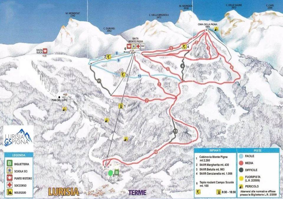 Pistenplan Lurisia – Monte Pigna Saison 2025/2026