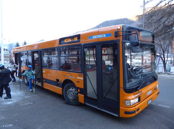 - Ein kostenfreier Skibus-Service ist im Val di Sole eingerichtet. Von den Orten erreicht man alle Skigebiete im Val di Sole per Skibus. In Madonna di Campiglio und Pinzolo verkehren kostenpflichtige Skibusse.