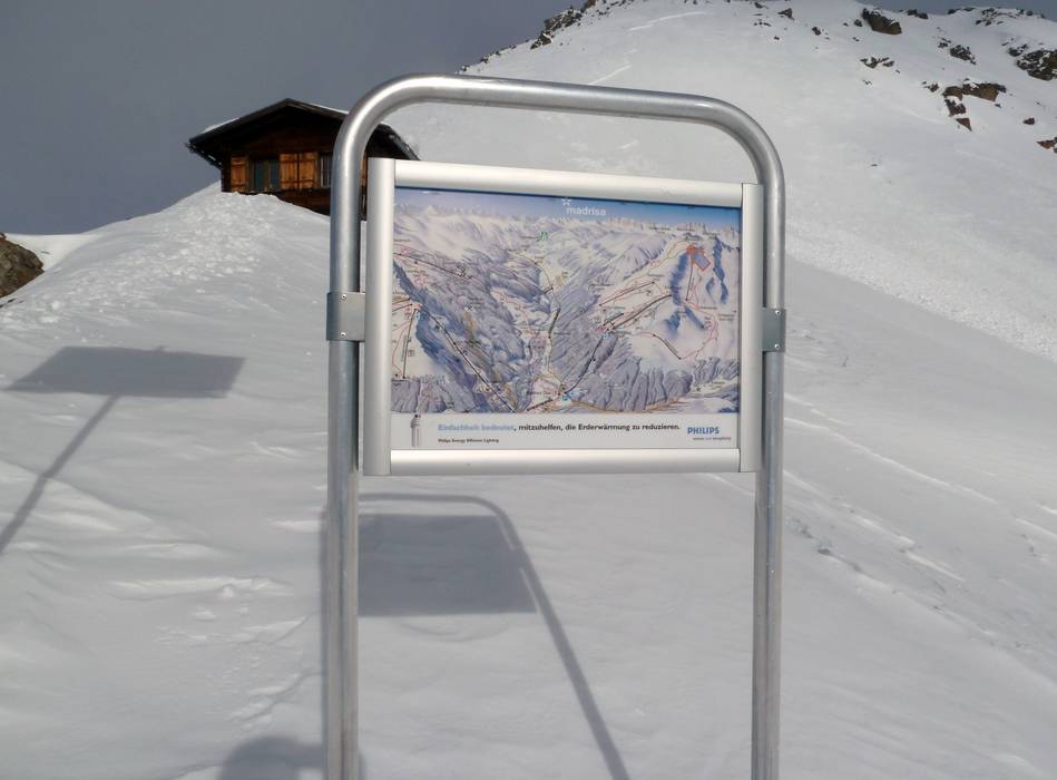 Orientierung (Pistenplan, Informationstafeln, Ausschilderung) und Sicherheit im Skigebiet Madrisa (Davos Klosters)