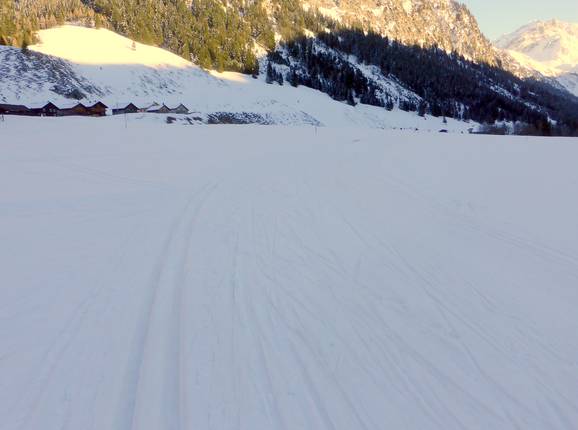 Die Loipe führt von Steg ins Valünatal und wieder zurück
