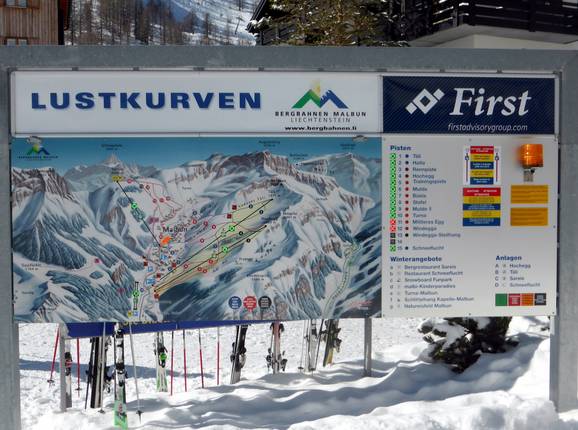 Orientierung (Pistenplan, Informationstafeln, Ausschilderung) und Sicherheit im Skigebiet Malbun
