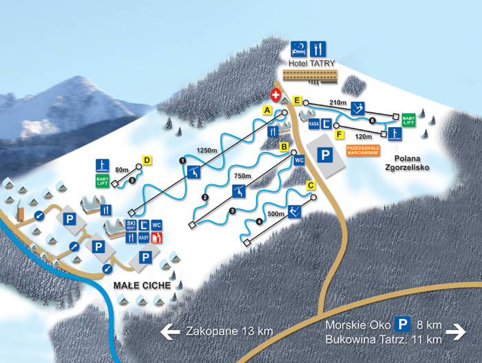 Małe Ciche (0,2 km), Murzasichle (8 km) Orte am Skigebiet