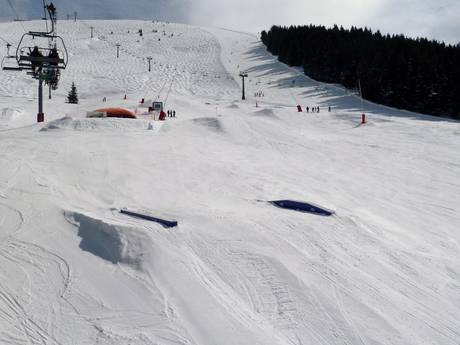An der Vierersesselbahn Grands Champs befindet sich der bekannte Snowpark vom Megève. Neben einem Boardercross gibt es auch einen Bag-Jump.