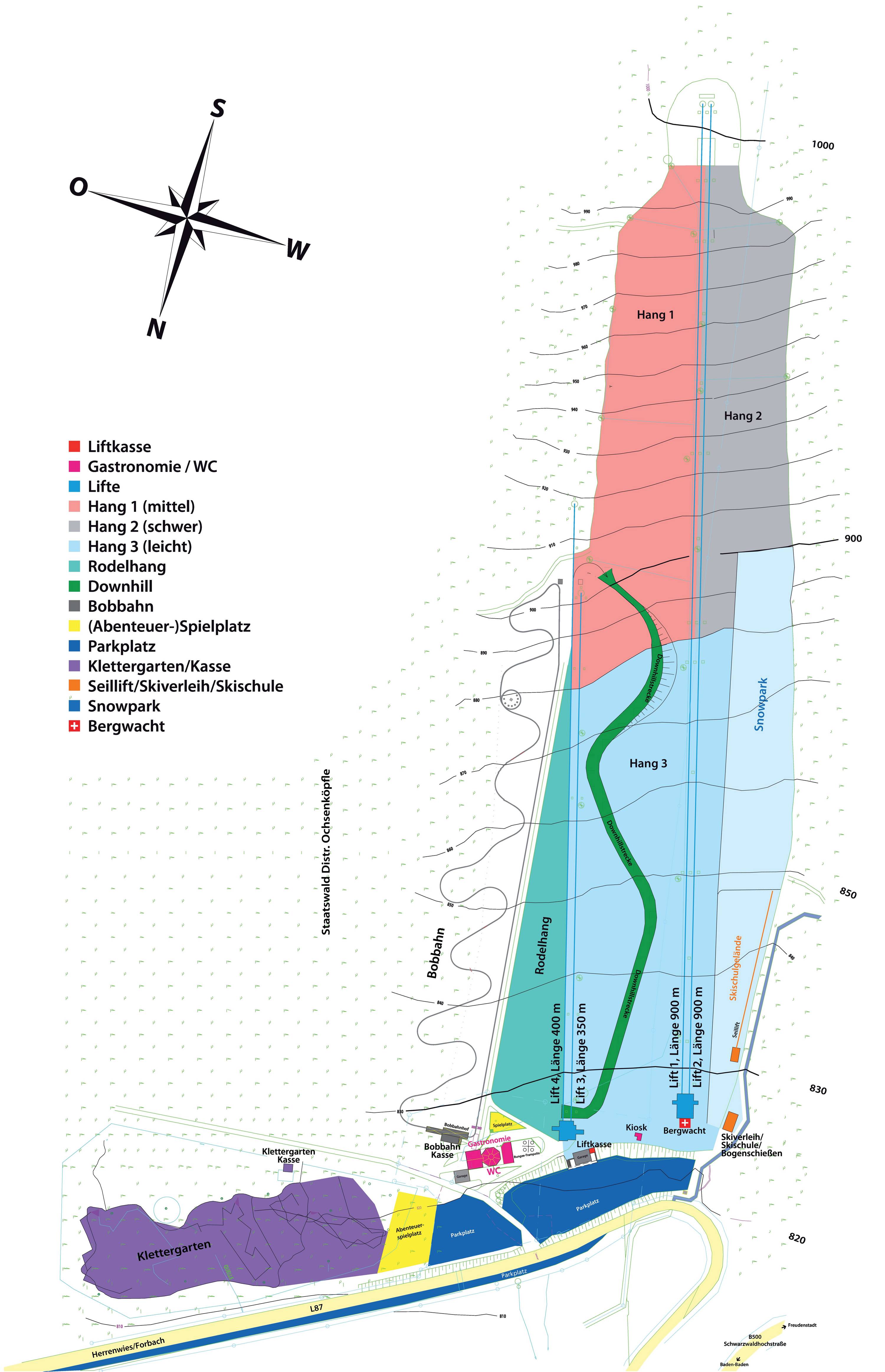 Orientierung (Pistenplan, Informationstafeln, Ausschilderung) und Sicherheit im Skigebiet Mehliskopf