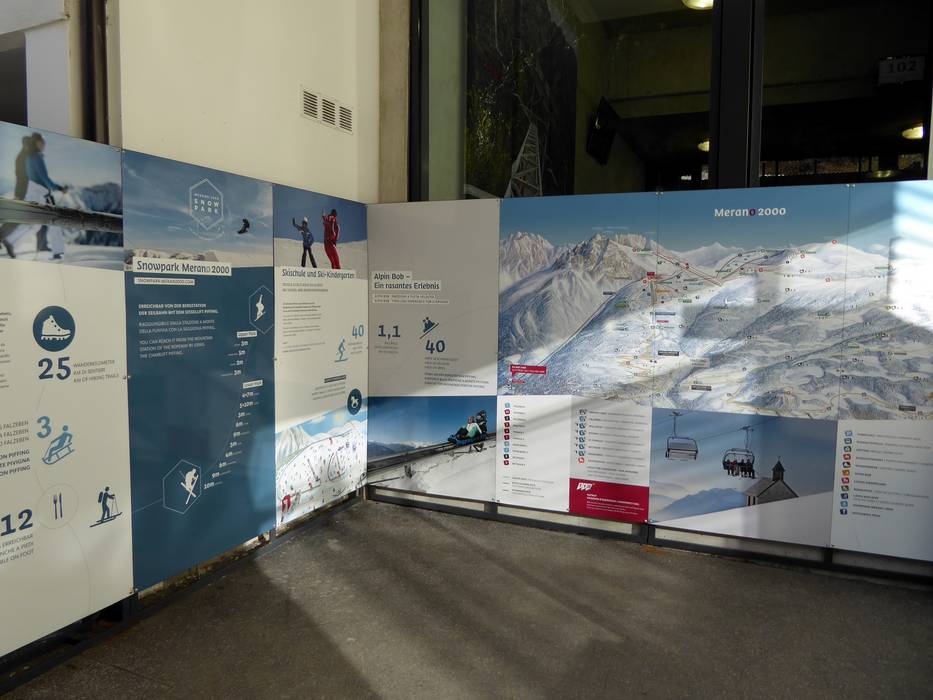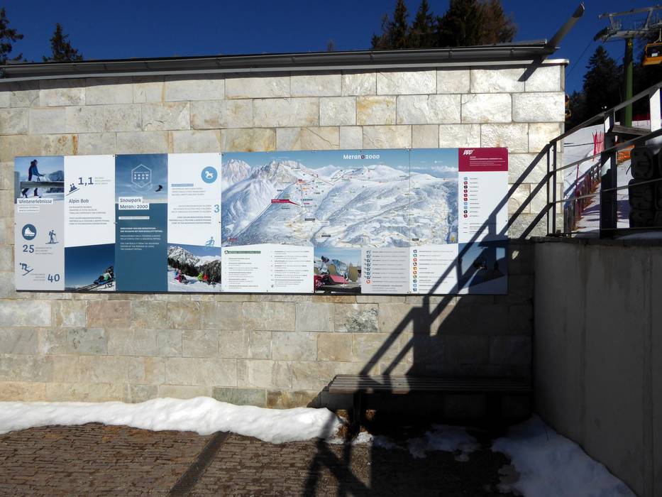 Orientierung (Pistenplan, Informationstafeln, Ausschilderung) und Sicherheit im Skigebiet Meran 2000