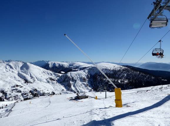 Das Skigebiet Meran 2000 liegt auf einem schneesicheren Hochplateau oberhalb von Meran. Sämtliche Pisten können beschneit werden. Selbst wenn in der Kurstadt Meran der Frühling mit milden Temperaturen einzieht und die Mandelbäume blühen, lockt das Skigebiet Meran 2000 noch zum Skifahren.