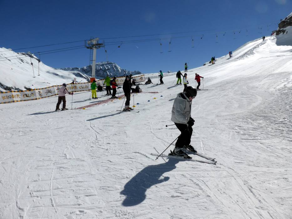 Direkt an der Mittelstation gibt es zwei Übungslifte mit einem sehr guten Übungsareal. Anfänger können auch auf den leichten Gletscherabfahrten und leichten Abfahrten zur Panoramabahn Klühspies üben. Die Pisten an der Vierersesselbahn Alteck und vom Eissee zur Mittelstation sind für Anfänger nicht zu empfehlen.