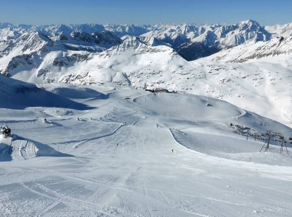 Höchste Punkt im Skigebiet/Bergstation Gletscher Jet - Piste 3 - Piste 10 - Piste 9 - Mittelstation- Piste 12 - Talstation Schwarzkopfbahn