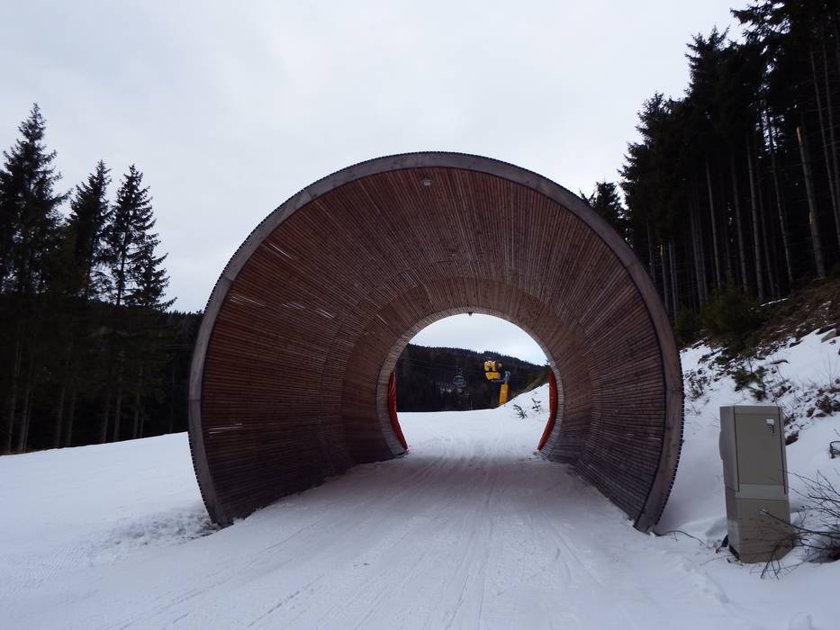 Der Tunnel in Form einer riesigen Milchkanne befindet sich auf der sogenannten Lella-Abfahrt - der Abfahrt von der Mönichkirchner Schwaig ins Tal und ist vor allem für die jüngsten Skifahrer ein besonderes Highlight.Almschaukel
