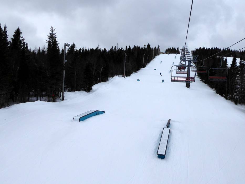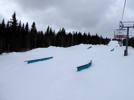 Das Skigebiet Mont-Sainte-Anne bietet einen großen Snowpark oben am Berg und einen Anfängerpark im Talstationsbereich.
