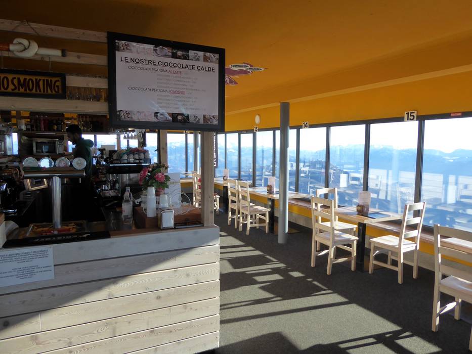 Die Bar Al Sole ist die höchste Einkehrmöglichkeit im Skigebiet Monte Bondone. Am Gipfel kann man sich stärken und den atemberaubenden Ausblick auf die Alpen genießen.