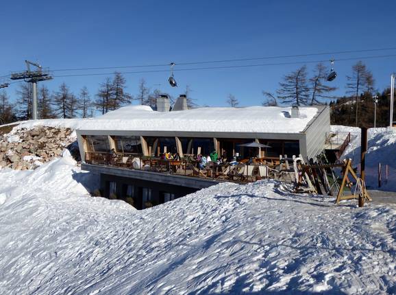 Die Rocce Rosse Mountain Lodge ist das exklusivste Restaurant am Berg. Hier wird man mit Köstlichkeiten aus Küche und Keller verwöhnt. An kalten Tagen wärmt ein Kamin und bei schönem Wetter lockt die große Sonnenterrasse.