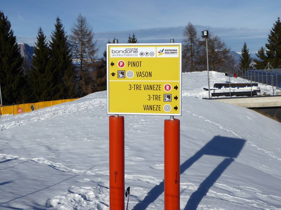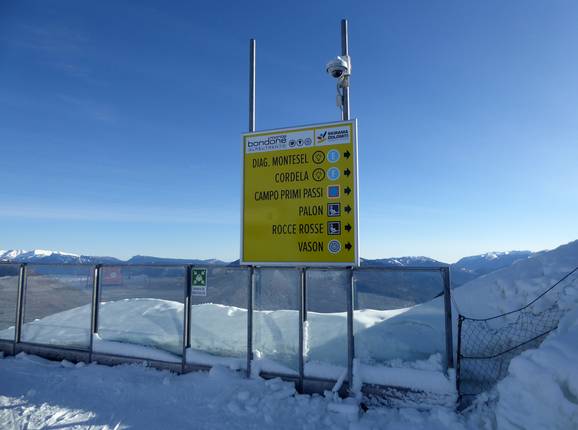 Orientierung (Pistenplan, Informationstafeln, Ausschilderung) und Sicherheit im Skigebiet Monte Bondone