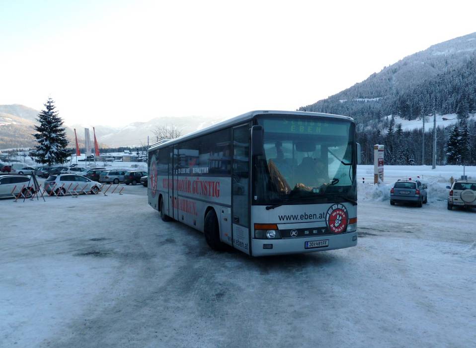 Die Haltestelle Eben ist etwa 500m vom Skigebiet entfernt. - Skibusse