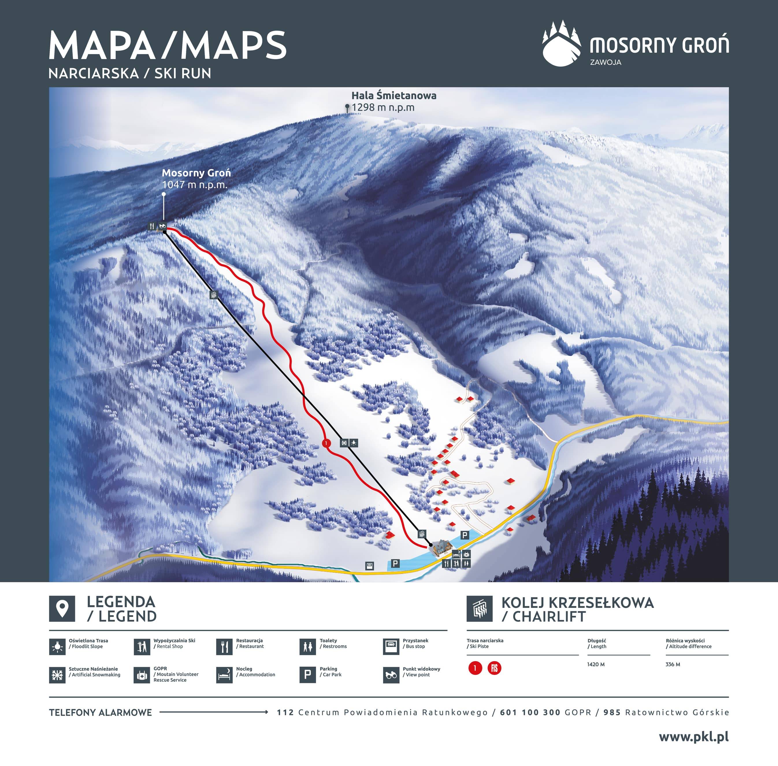 Pistenplan vom Skigebiet Mosorny Groń – Zawoja