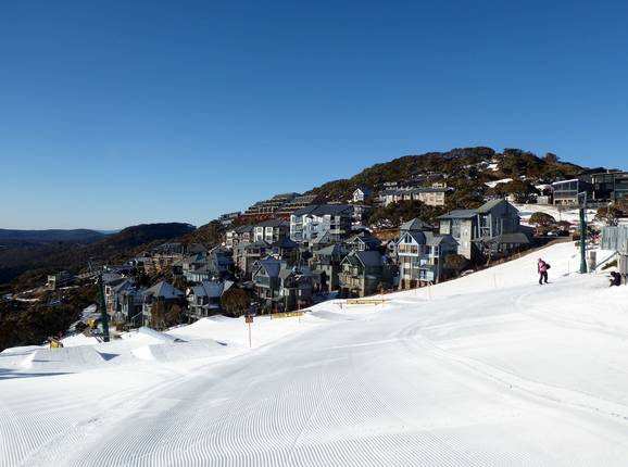 Die Unterkünfte im Skigebiet Mt. Hotham befinden sich an der Bergstation auf rund 1765 m Höhe in Hotham Central und entlang der Bergstraße. Von den Unterkünften kann man direkt auf die Pisten starten.