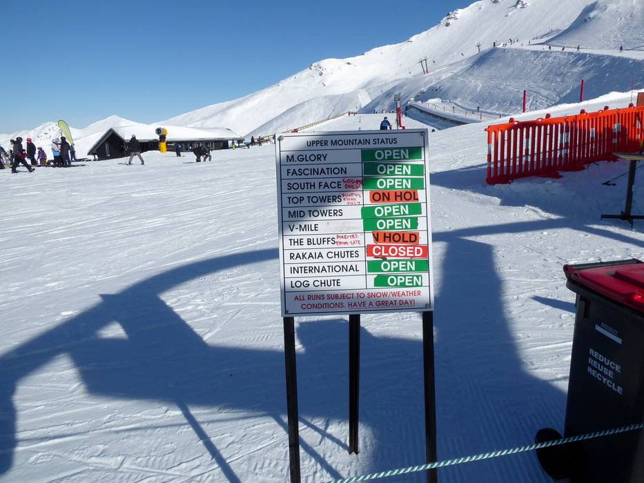 Im Skigebiet Mt. Hutt sind viele Informationstafeln und Ausschilderungen angebracht. Aktuelle Informationen findet man an der Bergstation und an der Talstation oder mobil auf der Webseite.