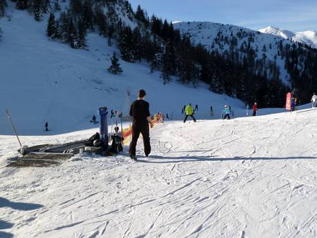 Direkt an der Bergstation der Mutterer-Alm-Bahn liegt das Kinderland mit Zauberteppich. Nebenan am Schlepplift Almboden befindet sich ein idealer Übungshang inklusive überdachtem Zauberteppich. Highlight ist zudem der Märchenwald der Skischule. Das Team ist sehr engagiert.