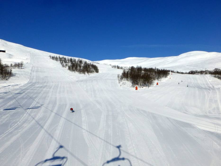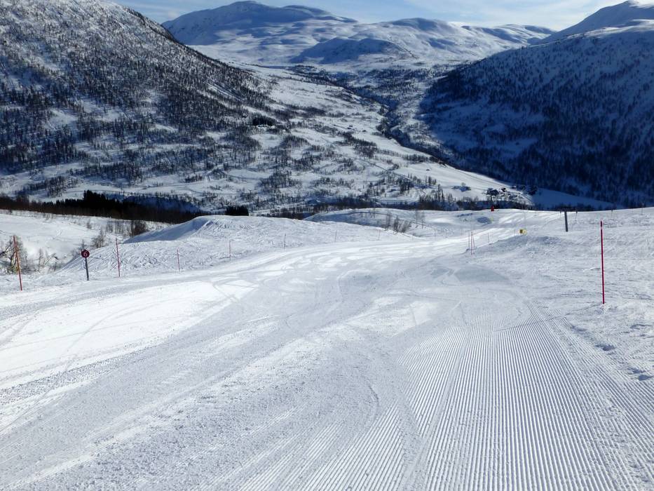 Im Skigebiet dominieren mittelschwere und leichte Abfahrten. Die Pisten sind zumeist sehr breit und teilweise oberhalb der Baumgrenze. Unterhalb der Sechsersesselbahn Myrkdalsekspressen findet man zwei schwierige Pisten vor. Auch zum Storhaugsekspressen führt eine schwarze Abfahrt.