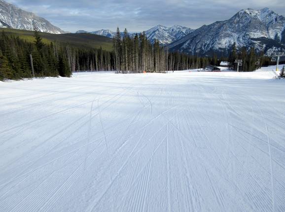 Im Skigebiet Nakiska werden fast alle Pisten täglich mit viel Liebe zum Detail perfekt präpariert. Lediglich die ausgeholzten Waldschneisenabfahren (Gladed Runs) können nicht präpariert werden.