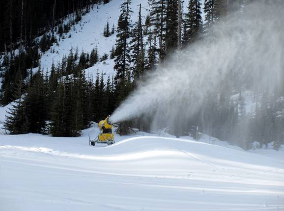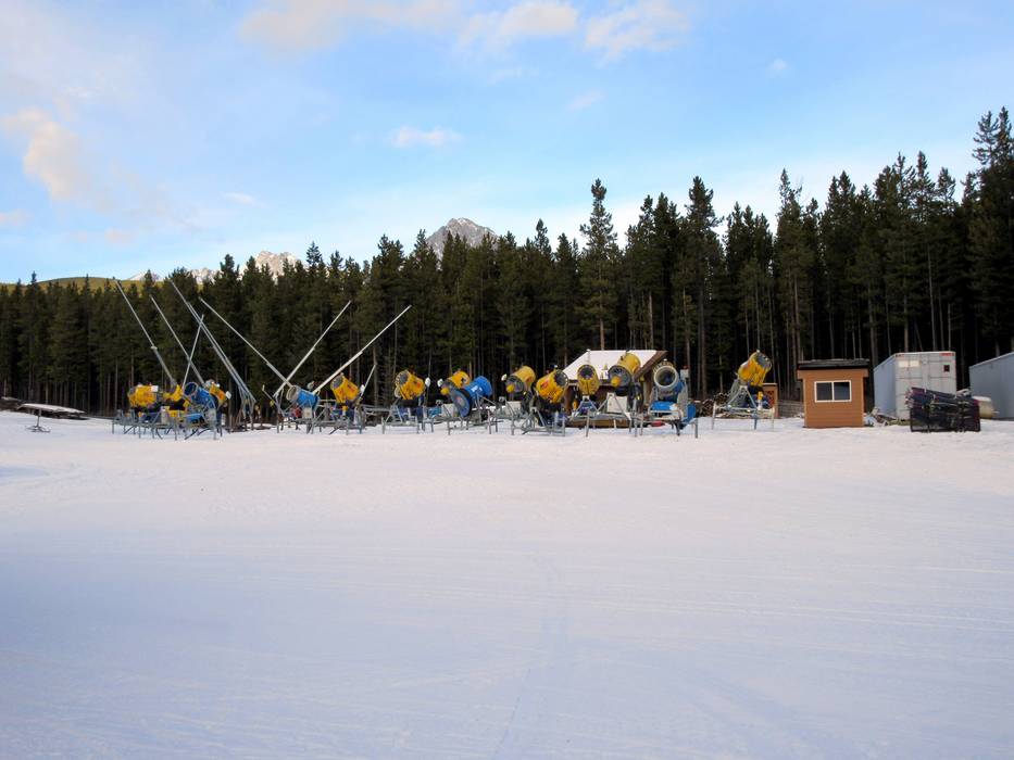 Das Skigebiet Nakiska bietet eine leistungsfähige Beschneiung und somit startet das Skigebiet zumeist als eines der ersten Skigebiete in Kanada mit dem Skibetrieb. Fast alle Pisten können beschneit werden. Lediglich die Monster Glades sind auf Naturschnee angewiesen.