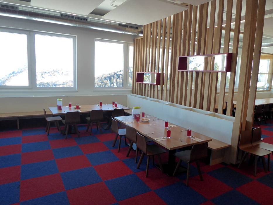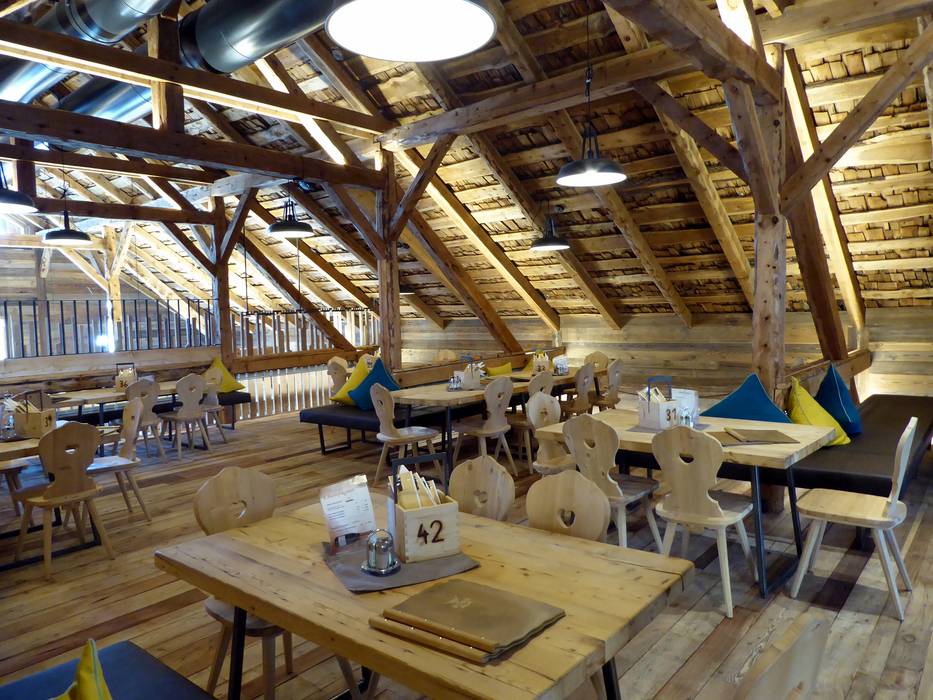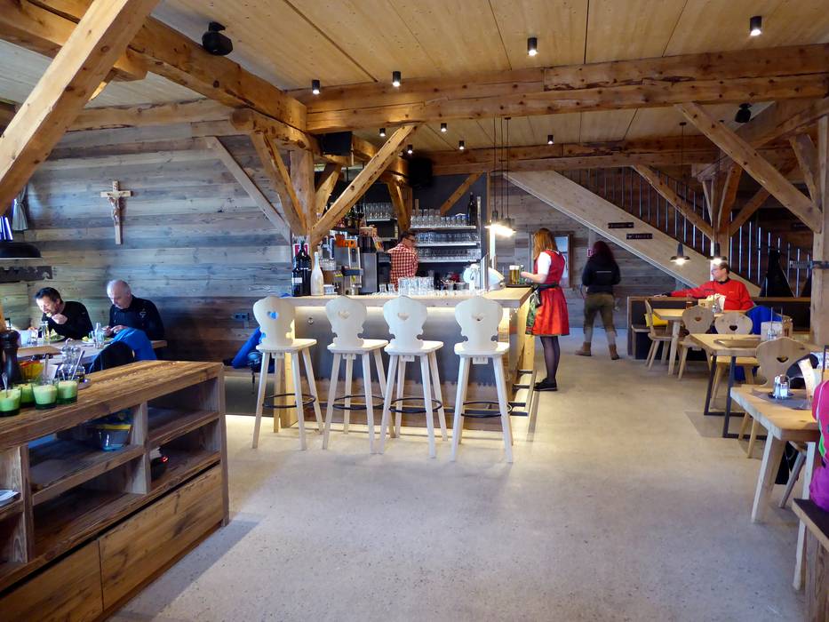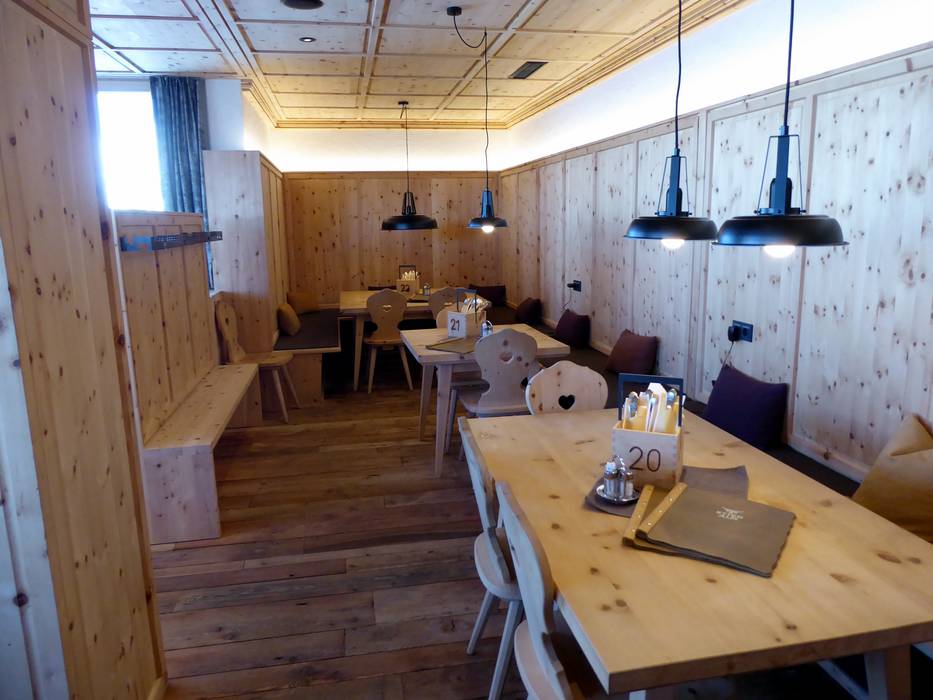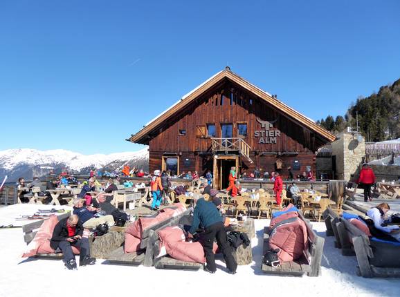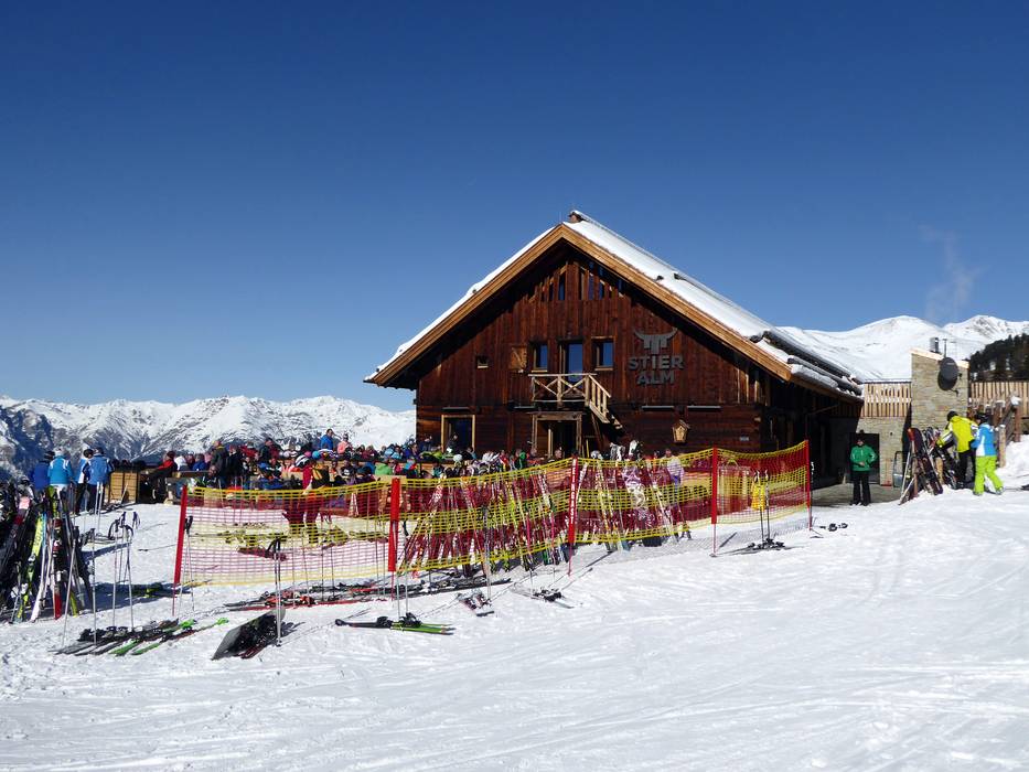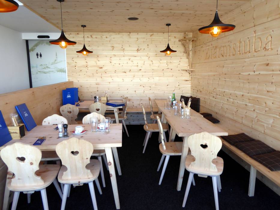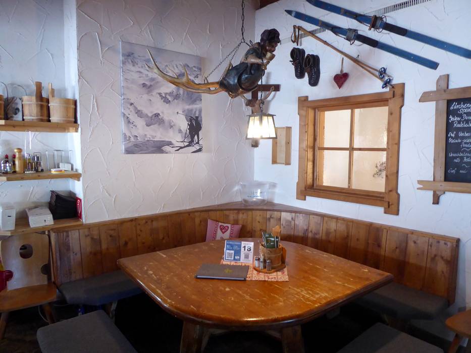 Trotz Neubau blieb der urige und traditionelle Hüttencharakter erhalten. Das Bedienungsrestaurant verfügt über 2 Stockwerke und zudem über eine größzügige Sonnenterrasse. Ein Rückzugsort bietet das gemütliche Zirbenstüberl. Das einzigartige Ambiente lädt nicht nur zu einer kurzen Mittagspause ein. Zudem besteht die Möglichkeit, seine Skischuhe abzulegen und mit Hauspantoffeln zu entspannen. Dafür steht ein eigener Raum mit Skischuh-Heizung zur Verfügung.