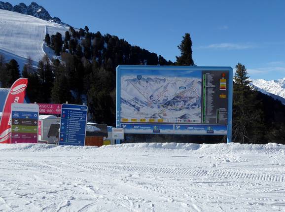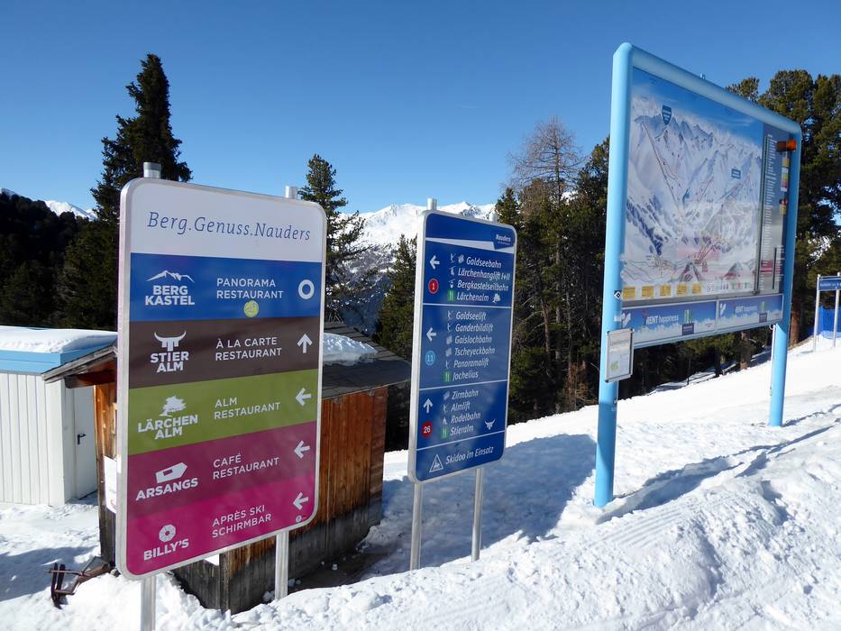 Orientierung (Pistenplan, Informationstafeln, Ausschilderung) und Sicherheit im Skigebiet Nauders am Reschenpass – Bergkastel