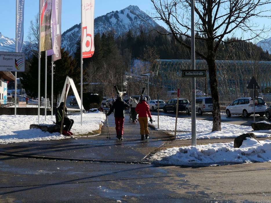 Beschneite Talabfahrt bis zum Ortsrand von Oberstdort. Von dort kurzer Fußweg (200 m) zur Talstation der Nebelhornbahn.