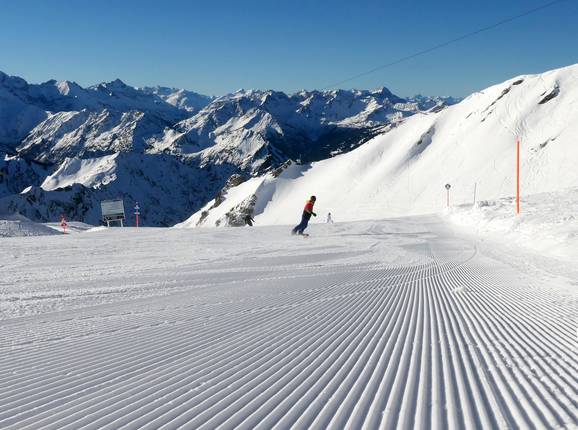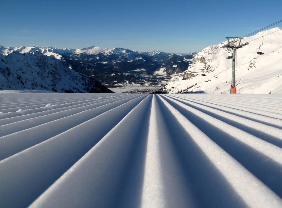 Die Pisten am Nebelhorn werden mit viel Engagement täglich in einen optimalen Zustand gebracht. Dank satellitengestützter Schneehöhenmessung verteilen die Pistenraupen den Schnee optimal und Schwachstellen mit wenig Schnee werden sofort erkannt.