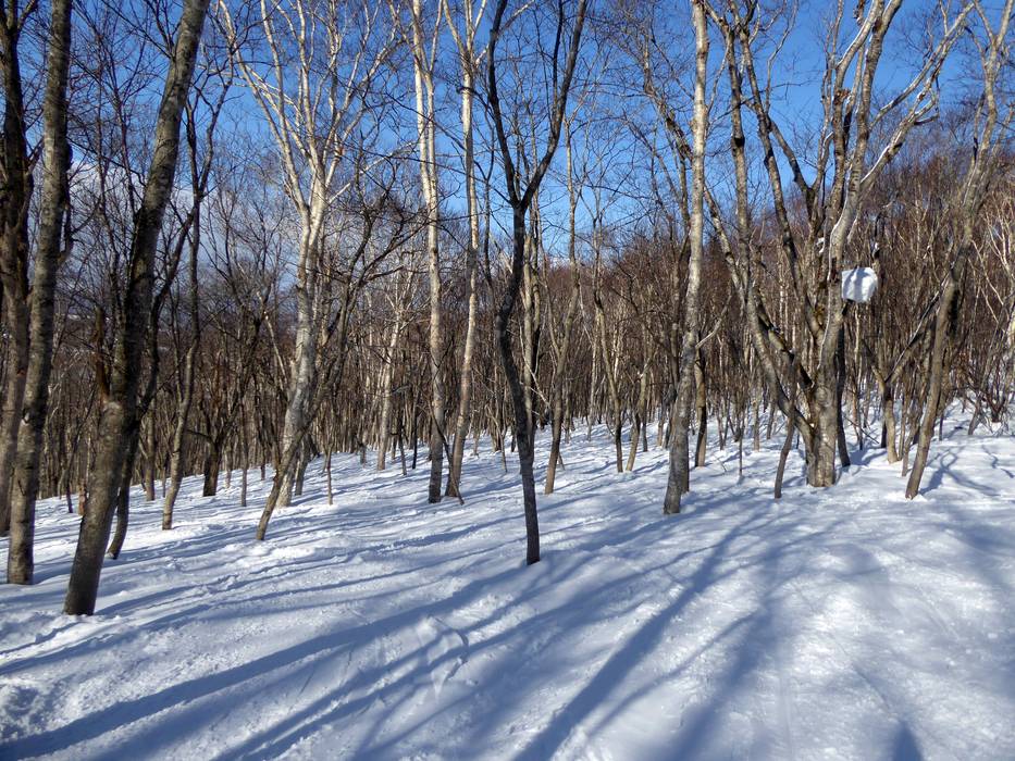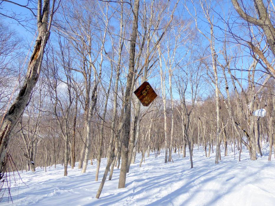 Das Kamp Kitsune ist ein Waldweg für Kinder. An der Talabfahrt nach Hanazono kann man hier durch den lichten Wald fahren und Figuren entdecken.