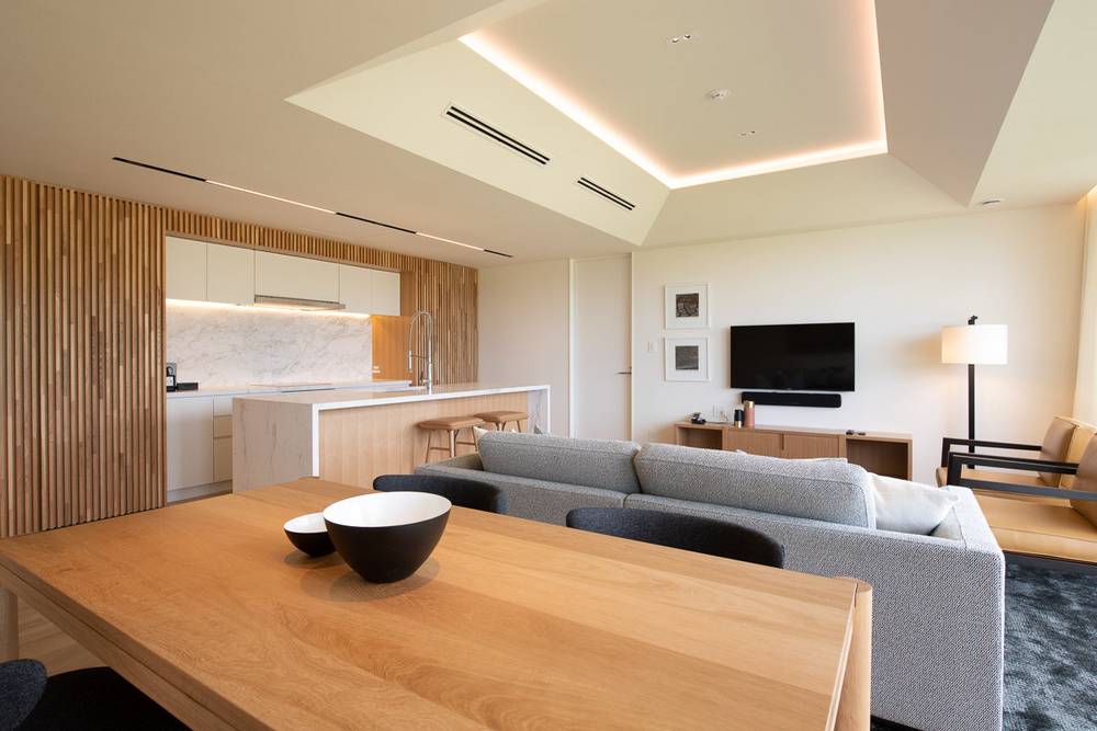 Das Hotel bietet erstklassige und moderne Studios, Suiten und Penthäuser. Mit großen Glasfronten ausgestattet kann man die umliegende Bergwelt wunderbar einsehen. Ein Highlight ist der Blick auf den Vulkan Yōtei-zan. Die Zimmer sind sehr geräumig und mit viel Holz und Stein eingerichtet. Die Penthouse-Suiten bieten sogar einen eigenen Onsen (heiße Quelle) im Freien und ein offenes Feuer. Hier bleiben wirklich keine Wünsche mehr offen.