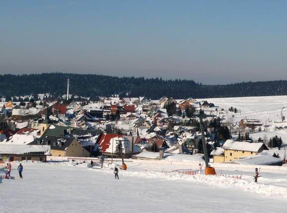 Von einigen Unterkünften kann man vom Ort Boží Dar fast direkt auf die Pisten. Generell muss man aber immer etwas durch den Ort laufen um zu den Pisten zu gelangen.