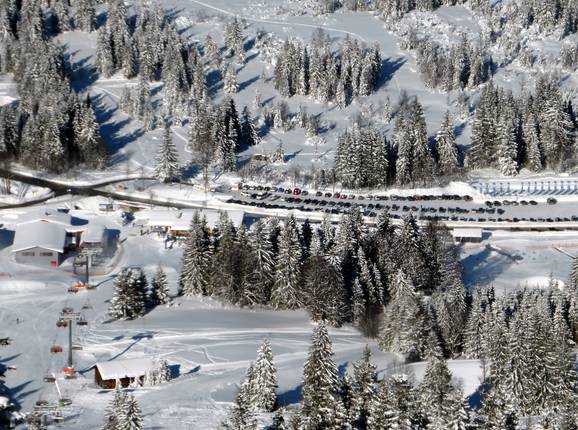 Oberjoch ist von der Autobahn 7 Ulm-Füssen rasch über die Ausfahrt Oy-Mittelberg erreichbar. Von der Autobahnausfahrt fährt man ca. 20 km (ca. 15 Minuten) auf der gut ausgebauten Bundesstraße 310 nach Oberjoch. Die ersten Parkplätze an der Iselerbahn sind kostenpflichtig. Fährt man die Passhöhe weiter in Richtung Tannheimer Tal kommen kostenfreie Parkplätze an den Einstiegen der Wiedhag- und Grenzwiesbahn. Insgesamt stehen ausreichend Parkmöglichkeiten an den Einstiegen zur Verfügung.