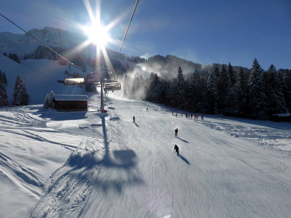 Auffahrt mit der Iselerbahn Piste Schwanden in Oberjoch Blick auf das Skigebiet Oberjoch