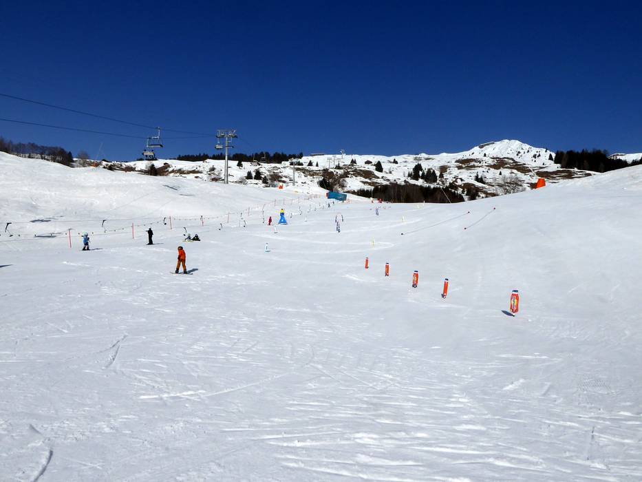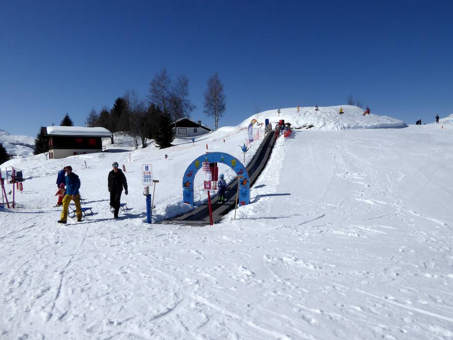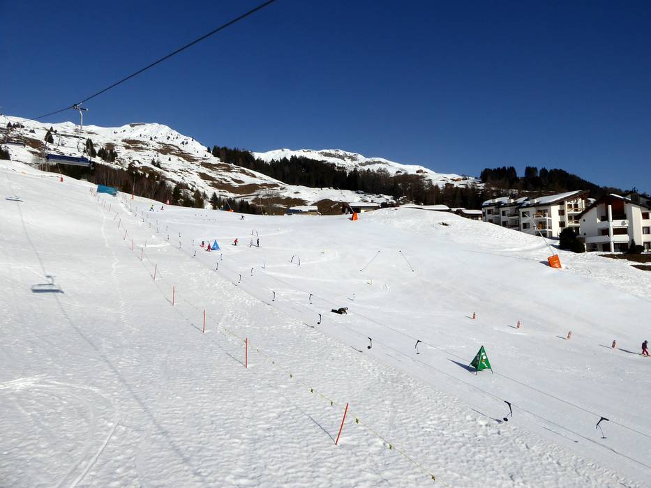 In Chummenbühl betreibt die Skischule Obersaxen ein großes Kindergelände im Talbereich. Förderbänder sorgen für einen reibungslosen Transport und Familien mit Kindern fühlen sich hier sehr wohl.