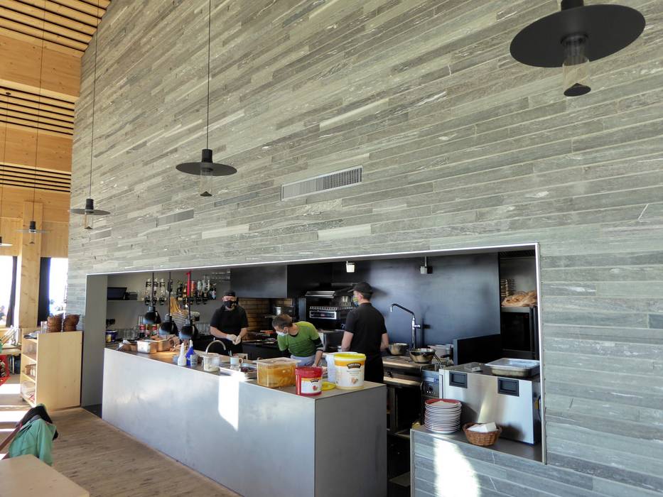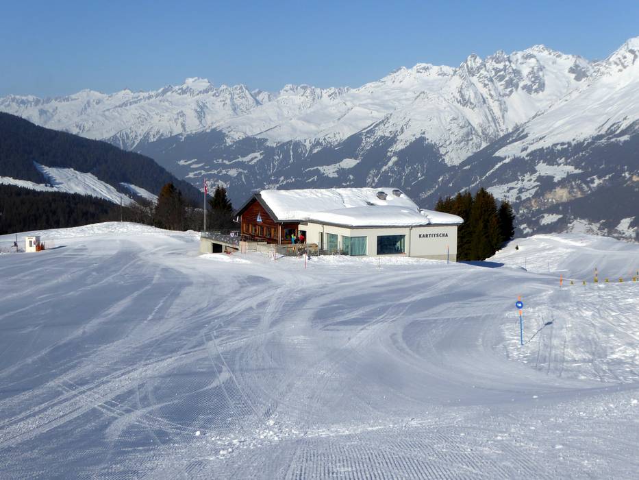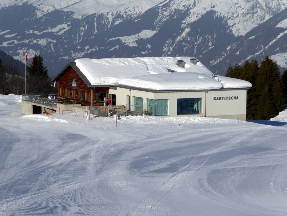 Das moderne Bergrestaurant Kartitscha bietet einen Selbstbedienungsbereich und einen bedienten Teil mit großer Sonnenterrasse. Hier werden Schweizer Spezialitäten und verschiedene Steaks serviert.