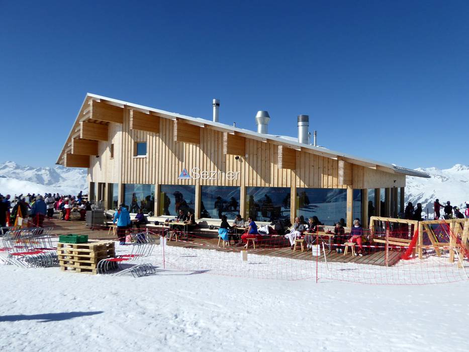 Das Gipfelrestaurant Sezner ist komplett aus Holz errichtet und bietet eine tolle Aussicht auf die wunderschöne Bergwelt. Die Gipfelburger und Klassiker vom Holzkohlengrill sind zu empfehlen. Bei schönem Wetter lockt die große Sonnenterrasse.