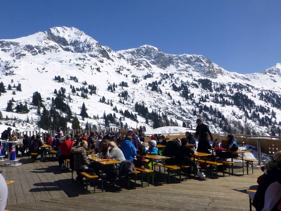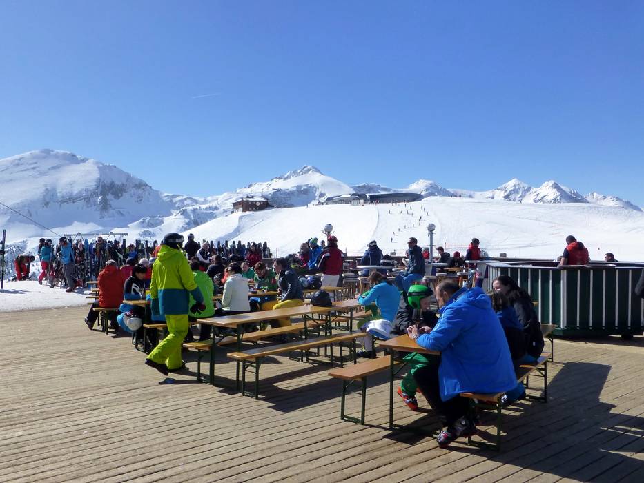 Wer das feuchtfröhliche Treiben aus der Hochalmbahn bestaunen durfte, wird sich mit hoher Wahrscheinlichkeit gleich anschließen. Die Sonnenterrasse der Hochalm ist ein absoluter Hot-Spot der Partyszene in Obertauern. Live-Musik heizt an ausgewählten Tagen zusätzlich ein.